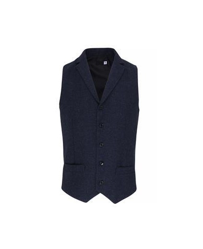 Eine attraktive, vielseitige Weste für Herren. Ausgestattet mit einem Reverskragen, der in den Hauptteil der Weste übergeht, mit Fünf-Knopf-Verschluss. Das Fischgrätenmuster entsteht durch die Verflechtung zweier farbiger Garne. Diese Weste ist an der Unterseite und an der Rückseite vollständig gefüttert, wo sich eine Schnalle befindet, die der Träger entsprechend anpassen kann.