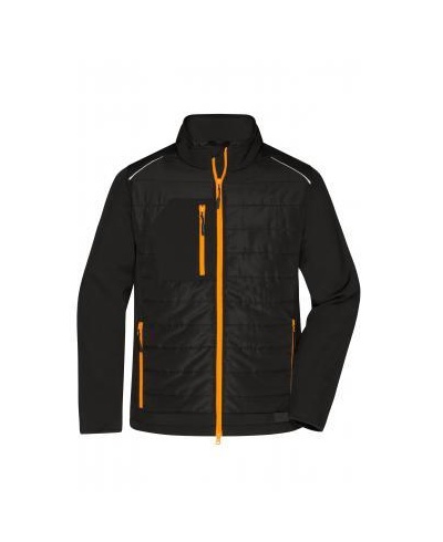 Pflegeleichtes 2-Lagen Softshellmaterial kombiniert mit gesteppen Einsätzen im Vorder- und Rückenteil