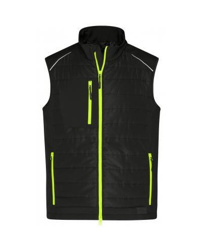 Pflegeleichtes 2-Lagen Softshellmaterial kombiniert mit gesteppen Einsätzen im Vorder- und Rückenteil
