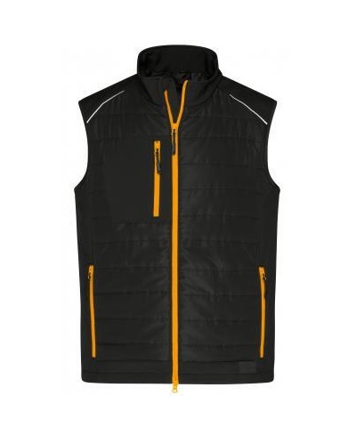 Pflegeleichtes 2-Lagen Softshellmaterial kombiniert mit gesteppen Einsätzen im Vorder- und Rückenteil
