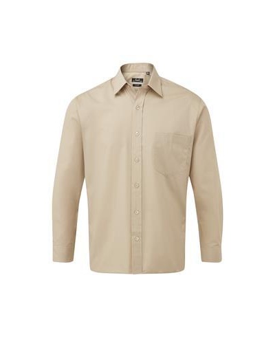 Ein langärmliges Popeline-Hemd für Herren, erhältlich in 27 Farben. Dieses klassische Arbeitshemd hat einen versteiften, formellen Kragen und eine offene Gehrungstasche auf der linken Brust. Der langärmlige Stil hat geknöpfte Manschetten,