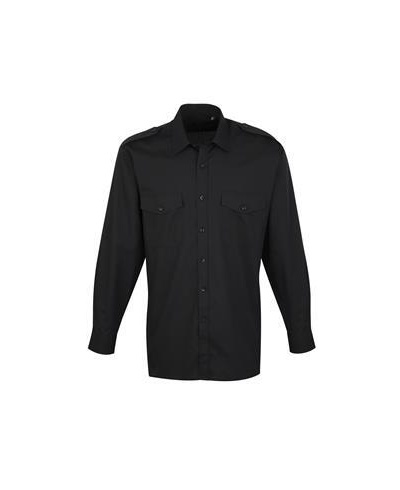 Für diejenigen, die eine anspruchsvollere Arbeitsuniform benötigen, ist dieses langärmlige Pilotenhemd für Herren ideal, da es an den Schultern Laschen für Schulterklappen aufweist und außerdem über zwei Brusttaschen mit Gehrungsschnitt verfügt.