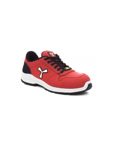 Niedriger Herren-Sicherheitsschuh, Obermaterial aus wasserabweisendem und atmungsaktivem Leder, atmungsaktives und abriebfestes Innenfutter (auf der gesamten Innenfläche), 6+6 metallfreie Ösen, Hinterkappe aus Leder mit Pampasstruktur mit reflektierendem Einsatz, Zehenschutzkappe aus druckgegossenem Aluminium, herausnehmbare Einlage Ortholite X40 016 ESD, zertifizierte durchtrittsichere Sohle aus Verbundgewebe, Versteifungselement zum Schutz vor Verdrehungen, hufeisenförmiger Spitzenschutz, Zwischensohle aus federleichtem Polyurethan ESD, Dämpfungssystem MASTER BALANCE aus PU-Polyether von hoher Bruchfestigkeit und ausgewogener Dichte, X-TRAIL-GRIP-Sohle aus TPU ESD mit Fersen- und Zehenschutz