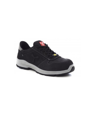 Niedriger Herren-Sicherheitsschuh, Obermaterial aus wasserabweisendem und atmungsaktivem Leder, atmungsaktives und abriebfestes Innenfutter (auf der gesamten Innenfläche), 6+6 metallfreie Ösen, Hinterkappe aus Leder mit Pampasstruktur mit reflektierendem Einsatz, Zehenschutzkappe aus druckgegossenem Aluminium, herausnehmbare Einlage Ortholite X40 016 ESD, zertifizierte durchtrittsichere Sohle aus Verbundgewebe, Versteifungselement zum Schutz vor Verdrehungen, hufeisenförmiger Spitzenschutz, Zwischensohle aus federleichtem Polyurethan ESD, Dämpfungssystem MASTER BALANCE aus PU-Polyether von hoher Bruchfestigkeit und ausgewogener Dichte, X-TRAIL-GRIP-Sohle aus TPU ESD mit Fersen- und Zehenschutz