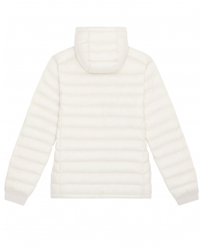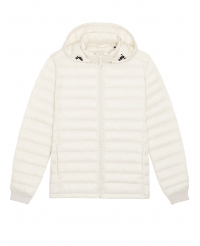 Material: 100 % recyceltes Polyester, fluorfreie DWR; Gewicht: 75g/m²; Taillierter Schnitt, angesetzte Ärmel, hoher Kragen mit abnehmbarer Kapuze und verdeckten Druckknöpfen aus mattem Metall, Kapuzenöffnung und unterer Saum mit verstellbarem Kunststoffstopper und elastischer Kordel, umgekehrter Nylonreißverschluss vorne in der Mitte, Leistentaschen mit Reißverschluss und zusätzlichem Ripsbandschieber, vollständig gesteppt, Seiteneinsätze für bessere Form, 1x1-Ripp am Ärmelsaum, innen eingefasste Nähte; Zertifikate: Global Recycled Standard (GRS), Fair Wair, STANDARD 100 by OEKO-TEX®, Peta - Approved VEGAN