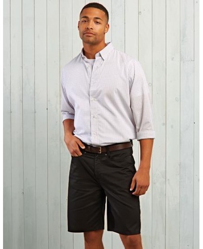 Diese Herren-Chinoshorts basieren auf unseren beliebten Chino-Jeans und verfügen über einen verdeckten Reißverschluss und einen Knopf am Bund. Am Bund befinden sich Schlaufen zum Anbringen eines Gürtels, zwei Seitentaschen mit Nietendetails und zwei aufgesetzte Taschen auf der Rückseite. Diese Chino-Shorts mit doppelt umgeschlagenem Saum sind eine tolle Option für die wärmeren Monate und bieten einen lässigeren und verspielteren Ansatz für die Unternehmenskleidung. Ein Hauch von Elasthan im Stoff sorgt für ein gewisses Maß an Dehnbarkeit für maximalen Komfort.
