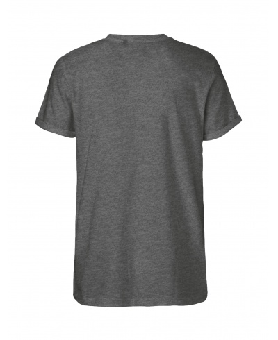 Material: 100% Bio-Fairtrade-Baumwolle, Single Jersey Knit; Gewicht: 155 g/m²; Leicht tailliert, an den Ärmeln hochkrempeln. Rundhalsausschnitt, Nackenband. Elasthan-Rippstrick-Nackenbügel