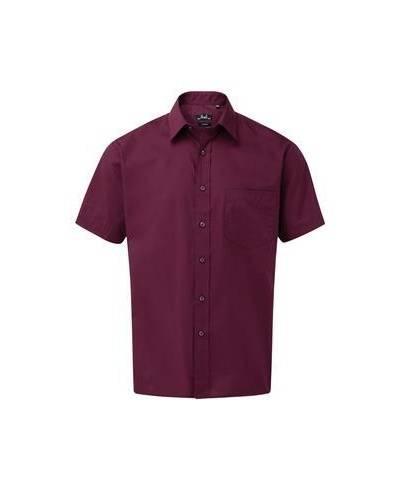 Ein kurzärmliges Arbeitshemd für Herren, erhältlich in 27 Farben. Dieses Hemd hat einen versteiften Kragen im formellen Schnitt, der Platz für eine Krawatte bietet, und der Hauptkörper verfügt über eine praktische linke Brusttasche.