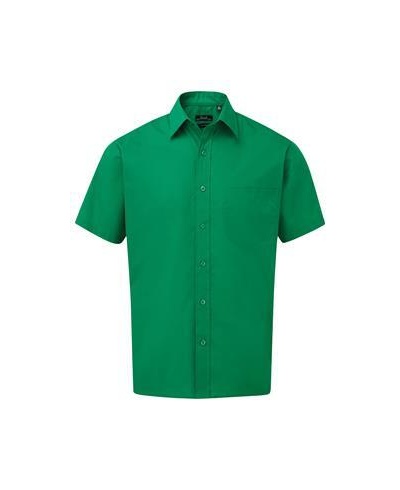 Ein kurzärmliges Arbeitshemd für Herren, erhältlich in 27 Farben. Dieses Hemd hat einen versteiften Kragen im formellen Schnitt, der Platz für eine Krawatte bietet, und der Hauptkörper verfügt über eine praktische linke Brusttasche.