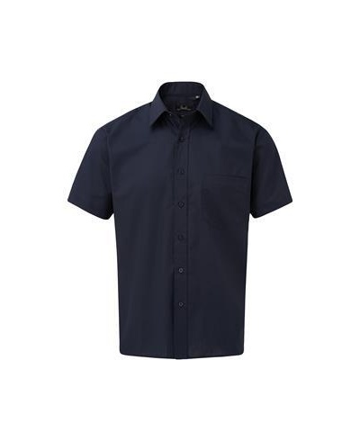 Ein kurzärmliges Arbeitshemd für Herren, erhältlich in 27 Farben. Dieses Hemd hat einen versteiften Kragen im formellen Schnitt, der Platz für eine Krawatte bietet, und der Hauptkörper verfügt über eine praktische linke Brusttasche.