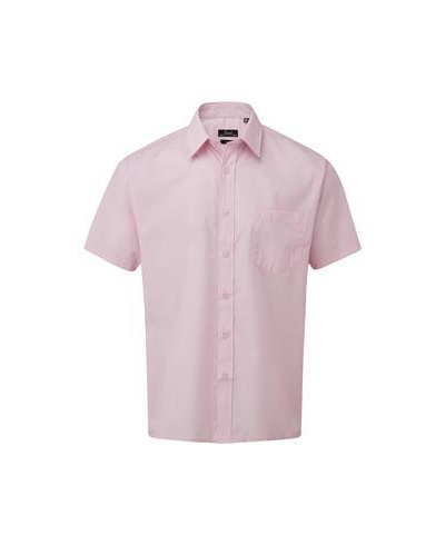 Ein kurzärmliges Arbeitshemd für Herren, erhältlich in 27 Farben. Dieses Hemd hat einen versteiften Kragen im formellen Schnitt, der Platz für eine Krawatte bietet, und der Hauptkörper verfügt über eine praktische linke Brusttasche.