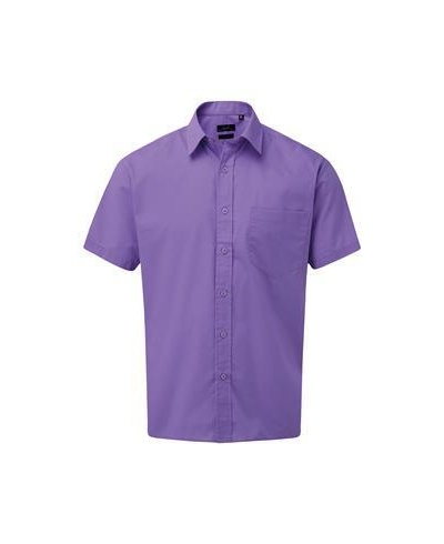 Ein kurzärmliges Arbeitshemd für Herren, erhältlich in 27 Farben. Dieses Hemd hat einen versteiften Kragen im formellen Schnitt, der Platz für eine Krawatte bietet, und der Hauptkörper verfügt über eine praktische linke Brusttasche.