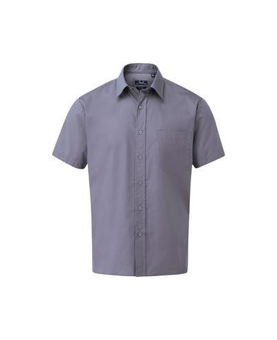 Ein kurzärmliges Arbeitshemd für Herren, erhältlich in 27 Farben. Dieses Hemd hat einen versteiften Kragen im formellen Schnitt, der Platz für eine Krawatte bietet, und der Hauptkörper verfügt über eine praktische linke Brusttasche.