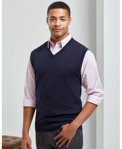 Der perfekte Pullover zur Vervollständigung Ihres Looks. Dieser ärmellose Strickpullover mit hohem Baumwollanteil hat ein modernes Design mit Rippstrick-Armlöchern und -Saum, um die Form zu behalten. Tragen Sie es mit Kragen und Krawatte für einen professionellen und eleganten Start in Ihren Arbeitstag.