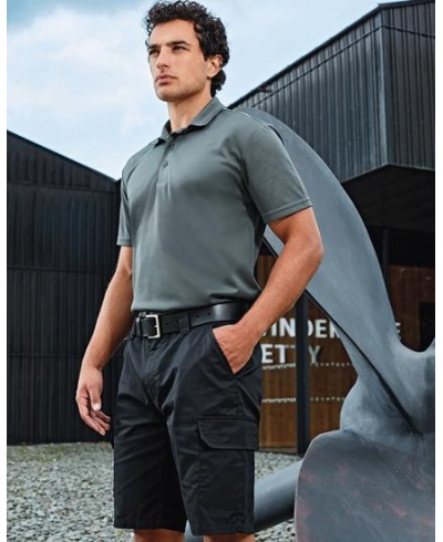 Eine ausgezeichnete Lösung für diejenigen, die in Berufen arbeiten, bei denen lange Hosen die Bewegungsfreiheit einschränken können. Eine strapazierfähige, langlebige und praktische Cargo-Shorts mit mehreren mobilfreundlichen Taschen zum Transport wichtiger Ausrüstung. Am Bund befinden sich Schlaufen zum Anbringen eines Gürtels sowie ein Metallknopf und ein abgedeckter Reißverschluss für eine sichere Befestigung. Ein entspannter Arbeitskleidungsstil für die wärmeren Monate, der sich gleichzeitig als clevere Lösung für kundenorientierte Tätigkeiten erweist. Eine äußerst vielseitige Cargo-Shorts für Herren, die bis 60 °C waschbar ist. Enthält recyceltes Polyester.