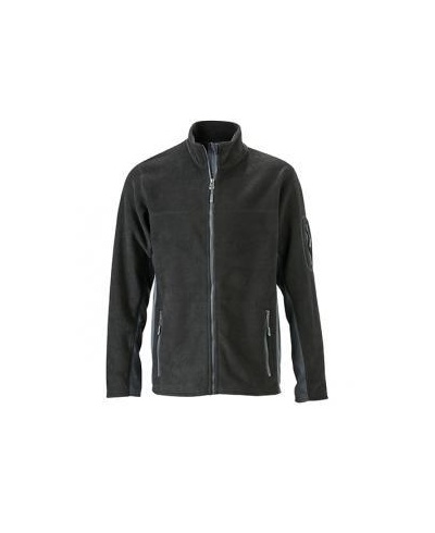Elastische Softshell-Einsätze in Kontrastfarbe an Arm und Seite