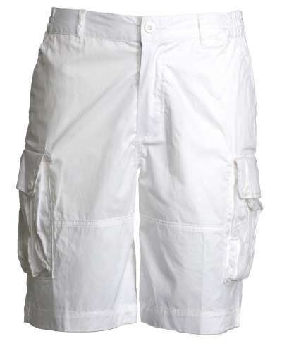 Herren-Bermudas mit seitlich dehnbarem Bund und Gürtelschlaufen, Hosenschlitz mit Metallreißverschluss und -knopf, zwei klassisch geschnittenen Vordertaschen, zwei seitlichen Blasebalgtaschen mit Patte, Knopf und Knopfloch, zwei Gesäßtaschen mit Patte, Knopf und Knopfloch