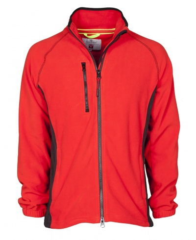 Zweifarbige Herren-Fleecejacke mit durchgehendem, schwarzem 8 mm Reißverschluss aus Kunststoff, Raglanärmeln, regulierbarem Kordelzug in der Taille, elastischen Ärmelbündchen, zwei Taschen mit verdecktem Reißverschluss, einer Vordertasche mit Reißverschluss, Kragen mit verstärktem Rand in Kontrastfarbe, verstärkten Nähten
