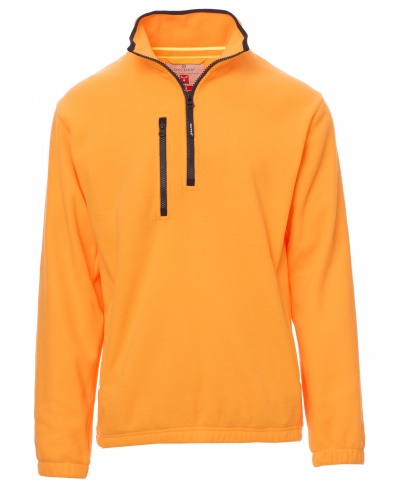 Fleecepullover mit kurzem, schwarzem Reißverschluss aus Kunststoff, Kugelärmeln, elastischen Ärmelbündchen und elastischer Taille, zwei Taschen mit verdecktem Reißverschluss,einer Vordertasche mit Reißverschluss, Kragen mit verstärktem Rand in Kontrastfarbe, verstärkten Nähten
