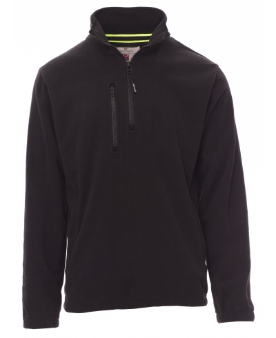 Fleecepullover mit kurzem, schwarzem Reißverschluss aus Kunststoff, Kugelärmeln, elastischen Ärmelbündchen und elastischer Taille, zwei Taschen mit verdecktem Reißverschluss,einer Vordertasche mit Reißverschluss, Kragen mit verstärktem Rand in Kontrastfarbe, verstärkten Nähten