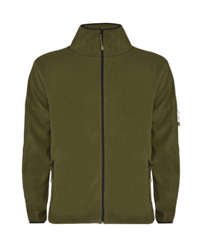 Microfleece Jacke für den Freizeitsport mit hohem Kragen. Kontrastfarben an Kragen- und Ärmelbündchen, sowie am durchgehenden Reißverschluss und Reißverschlüssen der Seiten- und linken Ärmeltaschen. Ziernähte an den Seiten und im Brustbereich. Ellenbogenschoner aus gleichem Material.