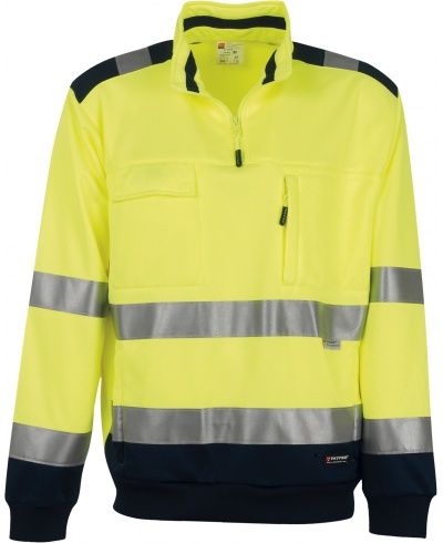 Gut sichtbarer Herren-Fleecepullover mit 3M-Streifen, kurzem Reißverschluss aus Nylon mit Metallschieber, elastischem Feinripp an Ärmeln und Taille, zwei Vordertaschen mit verdecktem Reißverschluss, einer Brusttasche mit LOCK SYSTEM mit abtrennbarem und verschließbarem