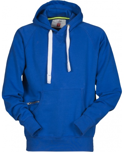 Herren-Sweatshirt mit Kapuze mit zwei Nähten und weißem Kordelzug, Nähten Ton-in-Ton und Metallösen, Raglanärmeln, V-Ziernaht am Ausschnitt, Kängurutaschen, Reißverschlusstäschchen,