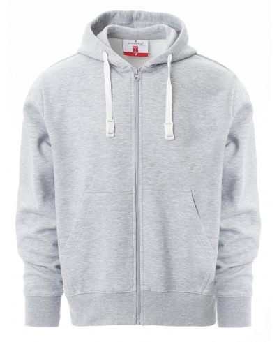Herren-Sweatshirt, durchgehender Reißverschluss und Kapuze in gleicher Farbe, Bauchtaschen, verstärkte Nähte, Bündchen und Bund aus elastischem Rippenstrick. Gleichfarbiges Verstärkungsband im Kragen