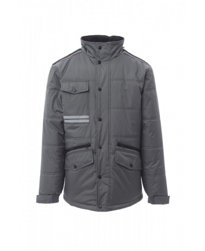 Herren-3/4-Jacke, verdeckter 8 mm Reißverschluss aus Kunststoff mit Metallschieber und Kunststoffknöpfen, abgerundeter Rücken, im Kragen verstaubare Kapuze, 2 Außentaschen mit LOCK SYSTEM und 2 mit Reißverschluss, schräg stehende Taschen, um das Einführen der Hand zu erleichtern, 1 Smartphone-Brusttasche und Ring zum Befestigen des Ausweises, Reflexstreifen auf der Tasche und auf dem Rücken. Innenseite: wattiert, Fleece in Kontrastfarbe auf Rücken und Kragen, 1 Tasche, Innenreißverschluss zum einfacheren Veredeln mit Druck und Stick