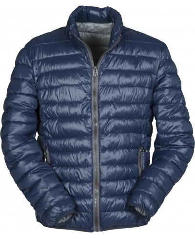 Herrenjacke mit 8 mm SBS-Kunststoffreißverschluss mit Metallzug, schmaler Bündchen und Saum, zwei Außentaschen. Gefüttert mit Daunen-Polyester, drei Innentaschen