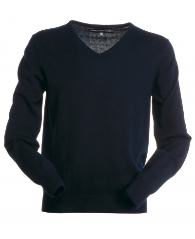 Leichter Herren-Pullover mit V-Ausschnitt, Halsabschluss, Ärmelbündchen und Taille aus