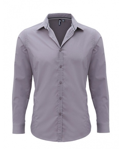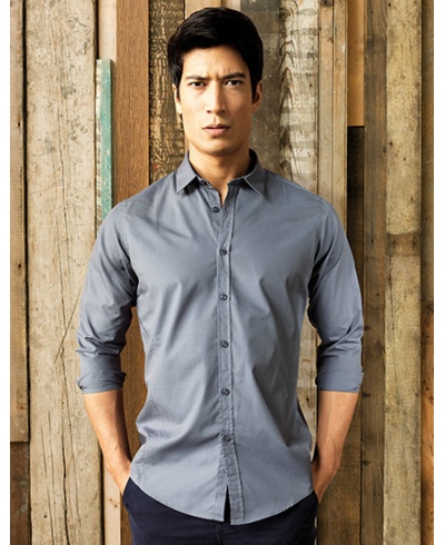 Das "Friday Shirt" für Herren präsentiert sich im modernen Look für das Bar-Personal und für legere Tage im Büro. Ein tailliertes Hemd mit weichem Kragen und kontrastfarbenem Nackenband, das beim Tragen als offener Halsausschnitt sichtbar ist. Es gibt eine Knopfleiste mit einem Knopf, mit der Sie den unteren Arm abrollen und einen coolen Roll-Back-Look erzeugen können.