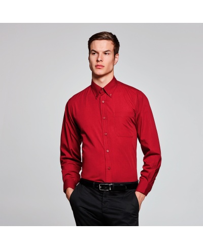 Langärmeliges Herrenhemd. Button Down Kragen. Brusttasche auf der linken Seite. 7 Ton-in-Ton Knöpfe. Abgerundeter Saum. Einfache Pflege.