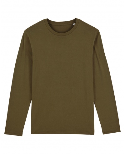 Gewicht: 180 g/m²; Material: 100% GEKÄMMTE RINGGESPONNENE BIO-BAUMWOLLE, SINGLEJERSEY, VORGEWASCHEN, NORMALE PASSFORM; Eingesetzte Ärmel, 1x1 Rippstrick am Halsausschnitt, Abgesetztes Nackenband, Breite Doppelabsteppung an Ärmelenden und unterem Saum