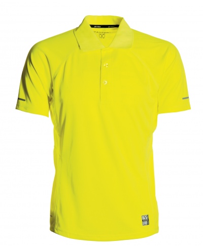 Sportlich-technisches Herren-Polo-Shirt, kurzärmelig, mit 3 Knöpfen Ton-in-Ton, Raglanärmeln, doppelter Seitennaht für eine gute Passform, unten eng anliegend und hinten länger geschnitten, mit reflektierendem Einsatz an den Ärmeln und am Nacken, Nackenband in Kontrastfarbe, Transfer-Etikett