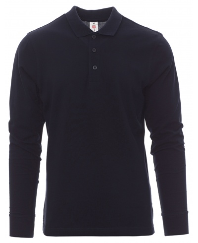 Men’s long-sleeved polo shirt with three mother-of-pearl effect buttons, ribbed collar and cuffs, side vents, concealed collar stitching with matching colour tape, stretch seams, reinforcement tape on the sides