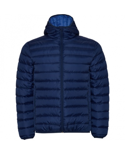 Gefütterte Herren Steppjacke mit anliegender Kapuze und Futter mit Feder-Touch.