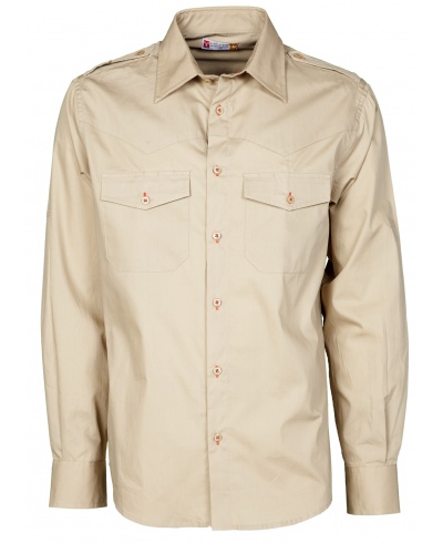 Knöpfen Ton-in-Ton, Knopflöchern in roter Kontrastfarbe (außer bei weißem Modell), Sattel auf der Vorderseite (außer beim weißen Modell), Schulterklappen, zwei Brusttaschen mit Patte, Befestigungsschlaufe mit Knopf am Arm zum praktischen Hochkrempeln der Ärmel
