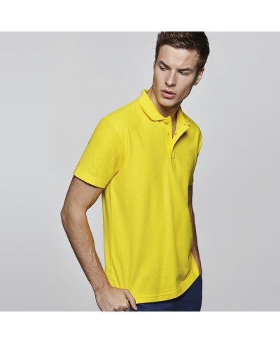 Polo Shirt. 3er-Knopfleiste mit gleichfarbigen Knöpfen. Rippstrickkragen. Offene Ärmelbündchen. Durchgehendes Nackenband von Schulter zu Schulter.