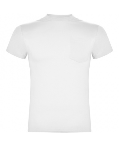 Kurzärmeliges T-Shirt mit Brusttasche. Seitennähte. Vierlagiger Kragen. Durchgehendes Nackenband.