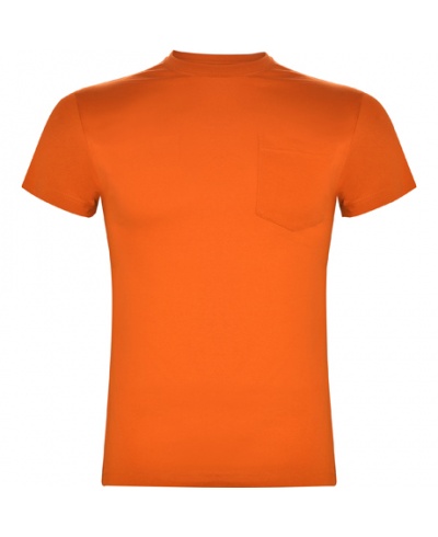 Kurzärmeliges T-Shirt mit Brusttasche. Seitennähte. Vierlagiger Kragen. Durchgehendes Nackenband.