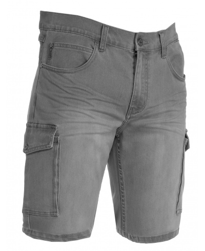 Herren-Bermudas im Jeans-Design mit fünf Taschen, zwei Seitentaschen mit LOCK SYSTEM mit leichter Ziehharmonikafalte, Hosenschlitz mit Metallreißverschluss und Knopf, Gürtelschlaufen, stone-washed für einen Used Look und Délavé-Effekt, mit kontrastfarbigen dickfädigen Nähten, Doppelnaht am Innenbein, Nieten und Patch aus echtem Leder