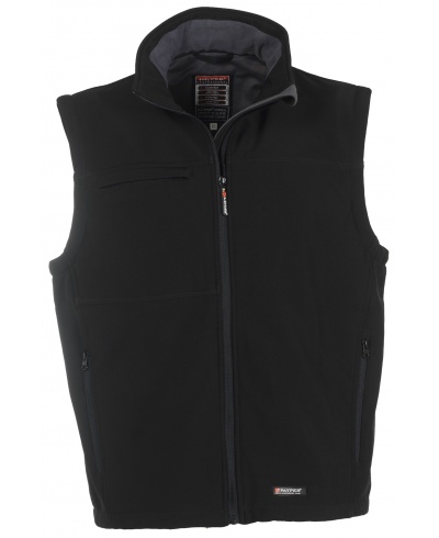 Taillierte Herren-Weste mit langem SBS-Reißverschluss, zwei Seitentaschen mit Reißverschluss, einer Brusttasche mit Einsteckfach für den Ausweis, Kordelzug in der Taille, einer Innentasche und zwei Reißverschlüssen zum einfacheren Veredeln mit Druck und Stick auf Brust und Schultern