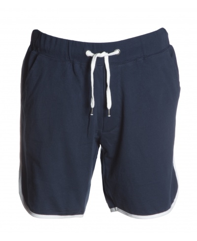 Herren-Sweatshorts mit Gummibund und Kordelzug in der Taille, verdecktem Reißverschluss, zwei Vordertaschen und Säumen in Kontrastfarbe