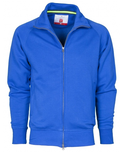 Herren-Sweatjacke mit durchgehendem, verdecktem Zwei-Wege-SBS-Reißverschluss aus Kunststoff mit Metallschieber, Raglanärmeln, zwei Taschen mit verdeckten Reißverschlüssen, elastischem Feinripp an Ärmeln und Taille, verstärkten Nähten