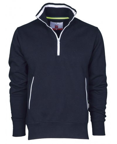 Sweatshirt mit kurzem Kunststoffreißverschluss in Kontrastfarbe, Metallschieber, kontrastfarbiger Einfassung am Kragen und an den Seitentaschen, elastischem Feinripp an Kragen, Ärmeln und Taille, verstärkten Nähten