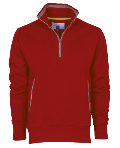 Sweatshirt mit kurzem Kunststoffreißverschluss in Kontrastfarbe, Metallschieber, kontrastfarbiger Einfassung am Kragen und an den Seitentaschen, elastischem Feinripp an Kragen, Ärmeln und Taille, verstärkten Nähten
