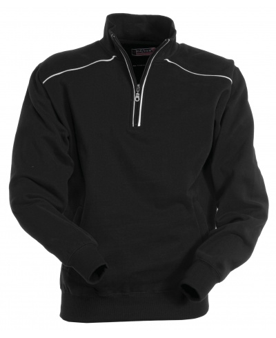 Sweatshirt mit kurzem gleichfarbigem Reißverschluss aus Kunststoff mit Metallschieber, kontrastfarbiger Einfassung an den Schultern, am Reißverschlussrand und auf dem Rücken, zwei Reißverschlusstaschen, elastischem Feinripp an Ärmeln und Taille