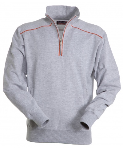 Sweatshirt mit kurzem gleichfarbigem Reißverschluss aus Kunststoff mit Metallschieber, kontrastfarbiger Einfassung an den Schultern, am Reißverschlussrand und auf dem Rücken, zwei Reißverschlusstaschen, elastischem Feinripp an Ärmeln und Taille