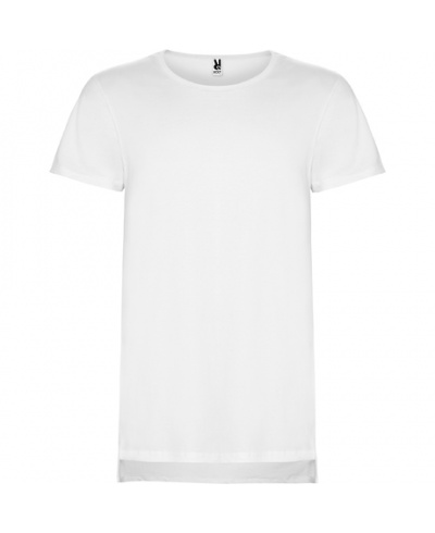 Langes Kurzärmliges Unisex T-shirt mit zweilagigem Rundhalasschnitt mit Elasthan. Seitenschlitze. Längeres Rückenteil.